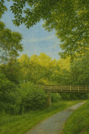 This artwork captures the calm beauty of a shaded path winding beneath a rustic wooden bridge, framed by a lush canopy of leaves and a sky painted in summer blue. It’s more than a scene — it’s an invitation to slow down, breathe deeply, and find peace in life’s simple moments. Hanging this piece in your space brings the refreshing energy of the outdoors inside, a reminder that serenity is always within reach.
